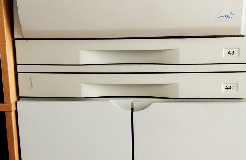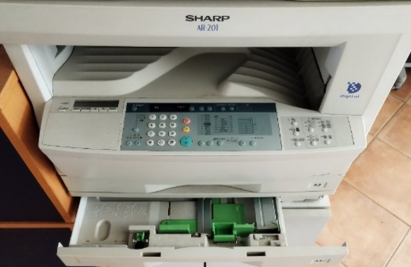 Fotocopiatrice funzionante con doppio cassetto per fogli A3 e A4, stampa in nero/bianco fronte retro automatico. Possibilità di acquistare il mobile in legno porta fotocopiatrice in fase di acquisto online al prezzo di 50€ selezionandolo come opzione nel modulo di acquisto online.